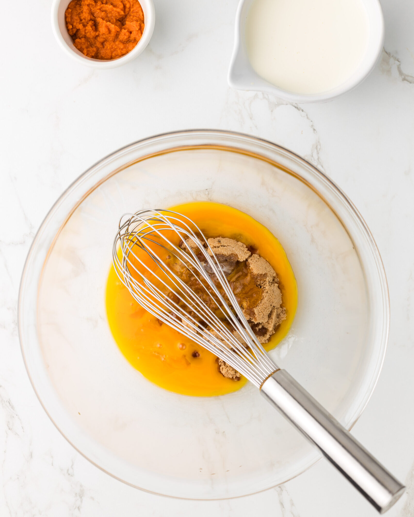 Whisk egg yolks and brown sugar together in a large bowl.