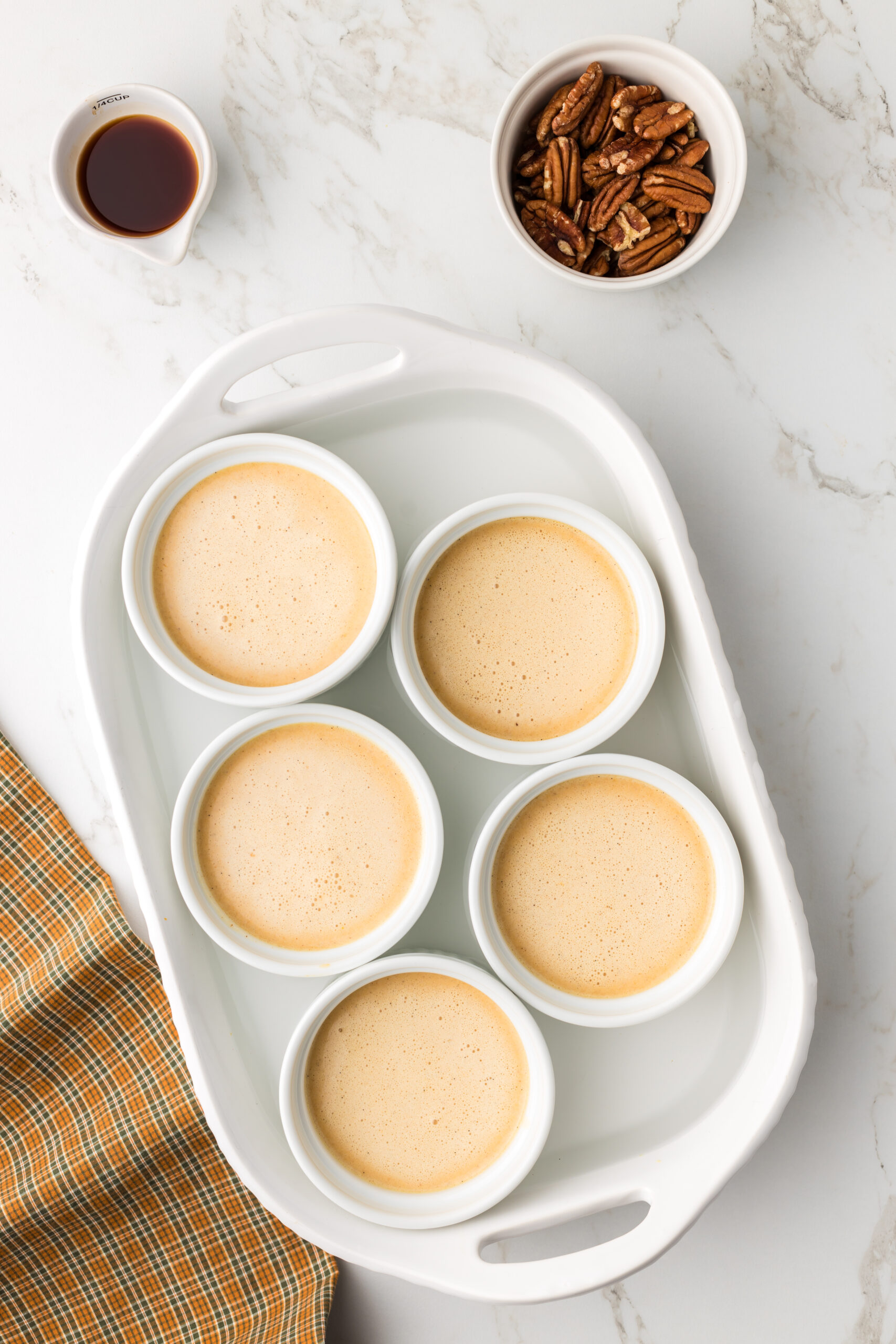 - 5 egg yolks, one white reserved for pecans